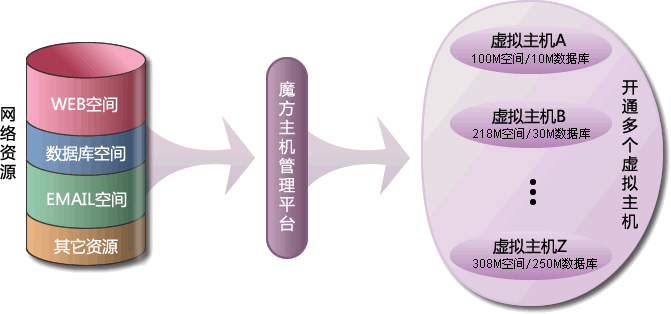 魔方主机是沈阳蓝德科技有限公司在虚拟主机技术基础上,最近推出的一个主机新产品。简单的来说,魔方主机是一个虚拟主机合集产品,它只用一次购买网络资源(如WEB空间容量、IIS链数、数据库空间容量等),即可开通多个虚拟主机,并可随时自由分配每个虚拟主机的可用资源。